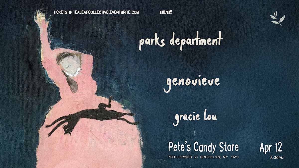 Parks Department / Genovieve / Gracie Lou at Pete's Candy Store on April 12th.About this Event