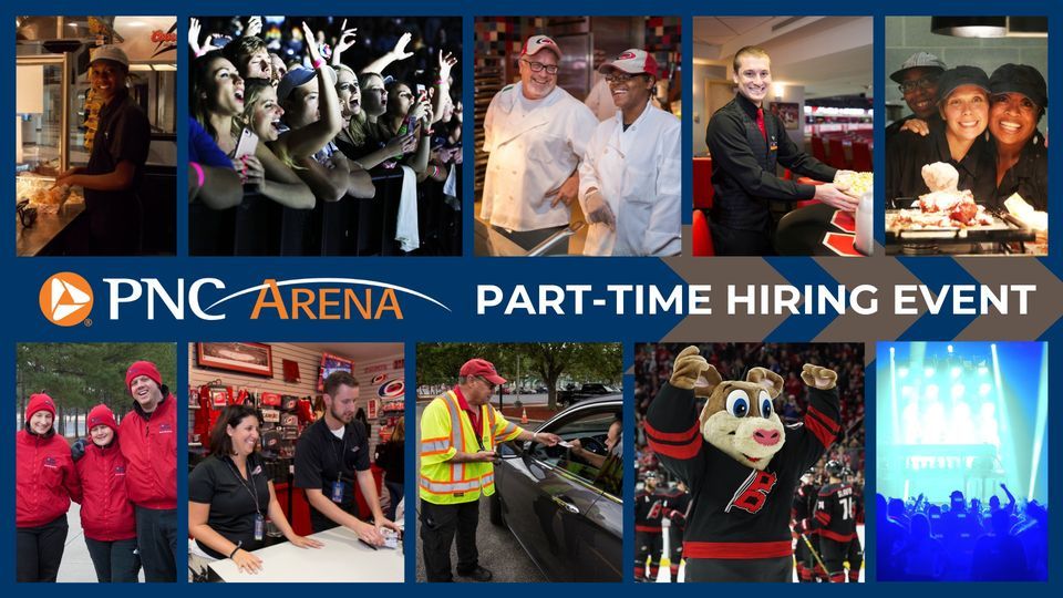 Looking for a fun part-time job? In need of some extra money? PNC Arena wants YOU on our team! Visit the PNC Arena Hiring Event on Tuesday, August 30, from 3:00pm - 6:00pm. Please enter through the West Entrance.More than 400 openings are available, including the following positions:
