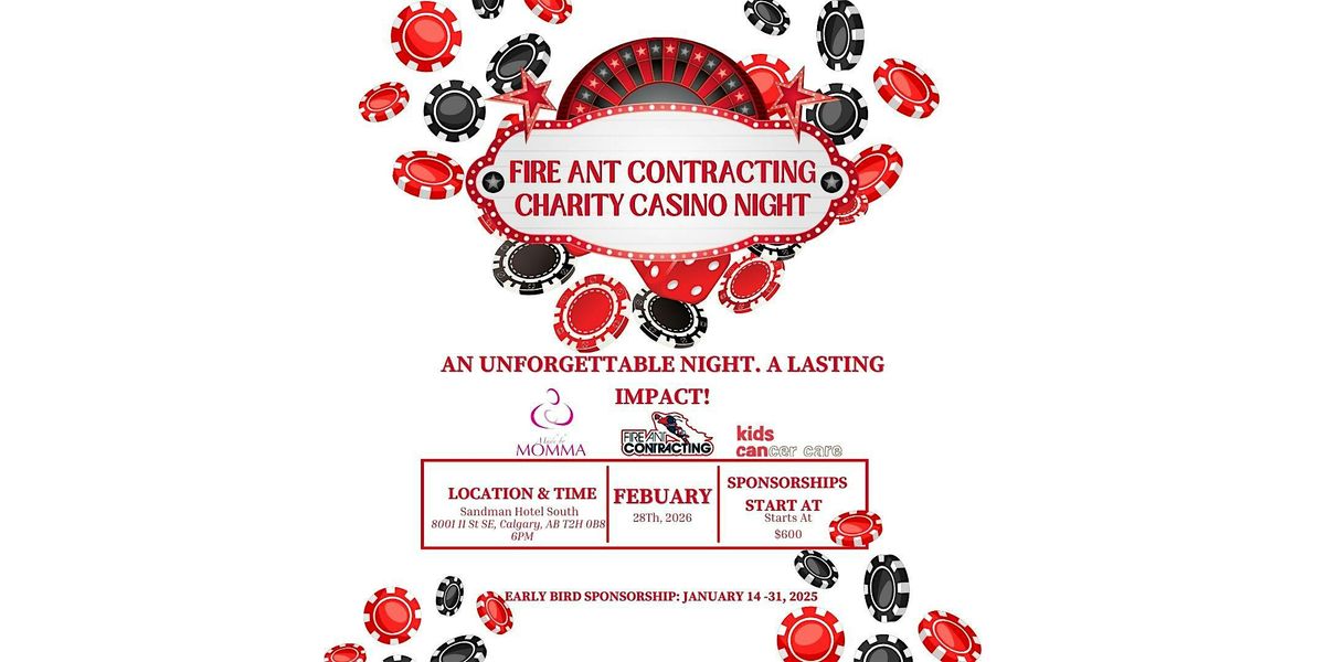 Support a great cause as a sponsor at Fire Ant Contracting’s Charity Casino Night, an evening of games, connection, and community impact.About this Event