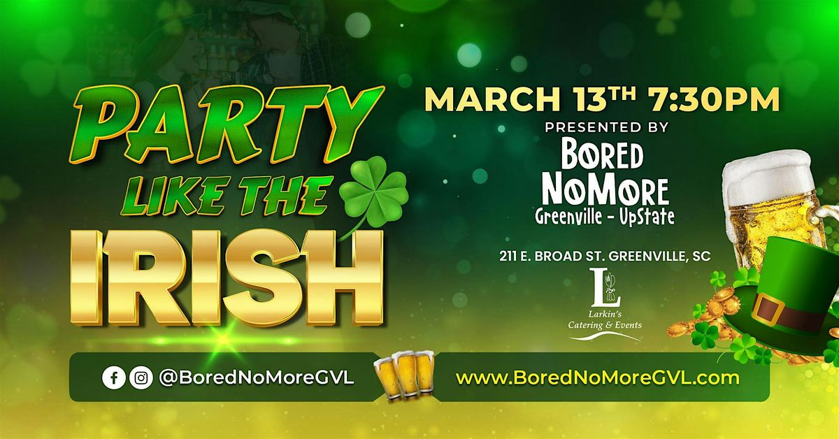 Experience the FUN and shenanigans while you Party Like the Irish. Invite your friends and join us for the BEST St. Patrick’s Day theme party in the upstate. March 13th at The L by Larkin's. Wear something green and dress up as much as you like for this special event!