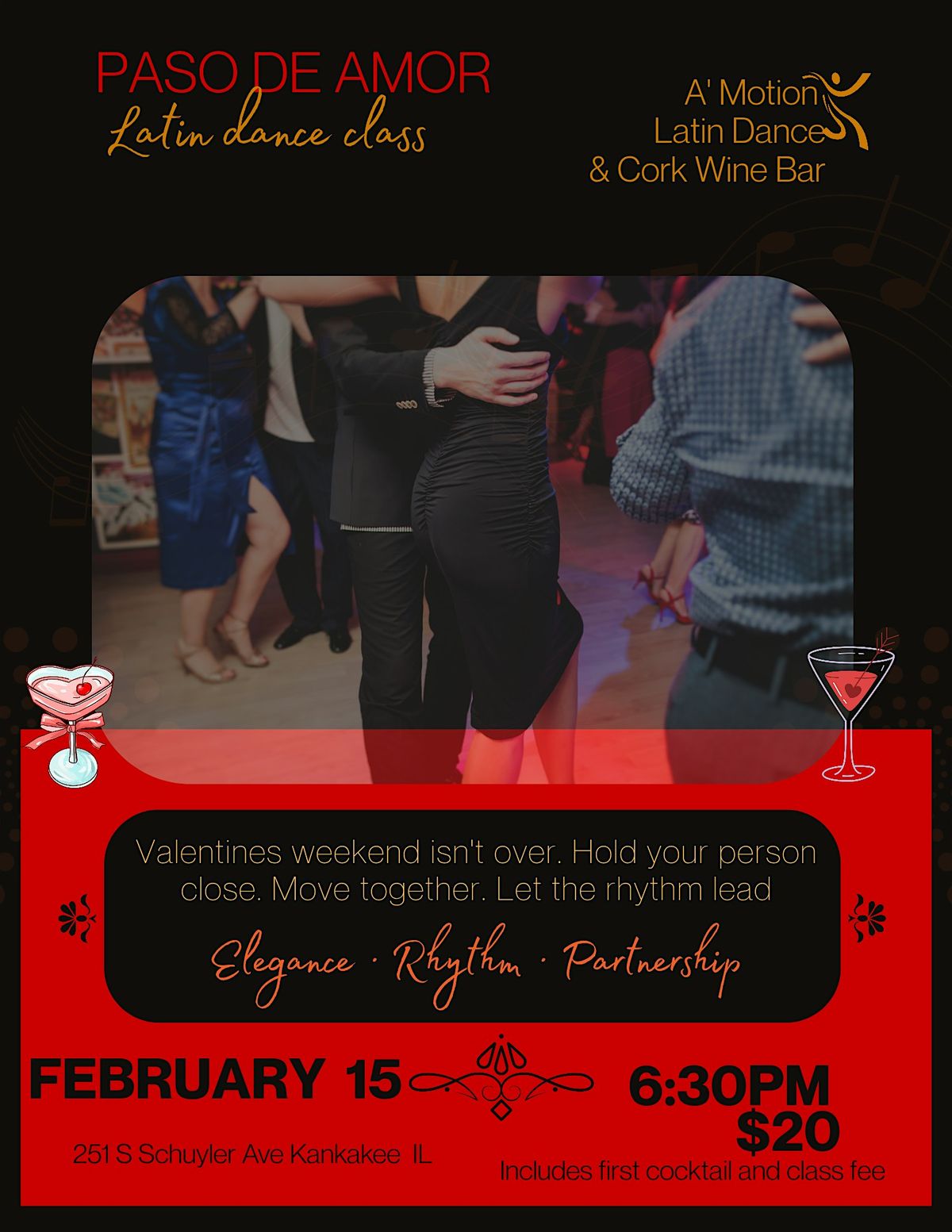 Valentines weekend of love at Cork continues. Grab your partner hold them close, move together, let the rhythm lead you. Class starts at 6:30pm price includes class and one cocktail!
