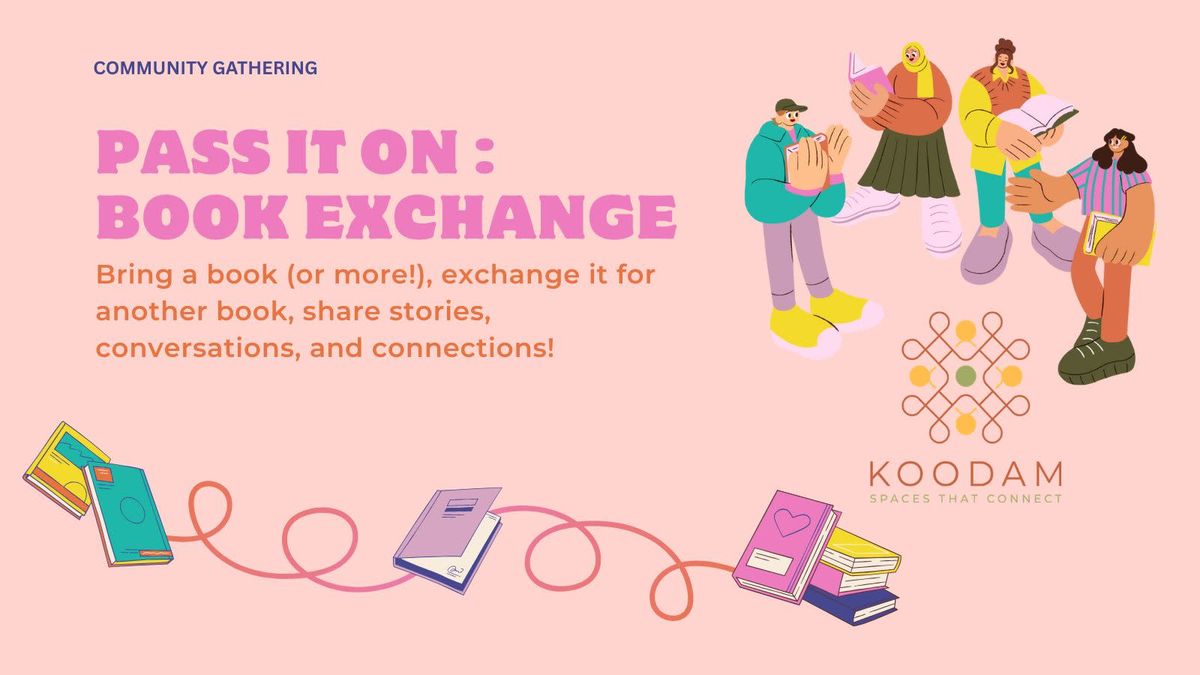 Bring a book (or multiple) you’ve enjoyed and exchange it for another. The Book Exchange is a casual, unhurried space for readers to browse, chat, and discover new stories through each other’s shelves.You’re welcome to talk about the book you’re leaving behind, or simply pick one up quietly. There’s no right way to participate — just a shared love for reading and stories. A lovely way to end the week and to start the festive week at Koodam.