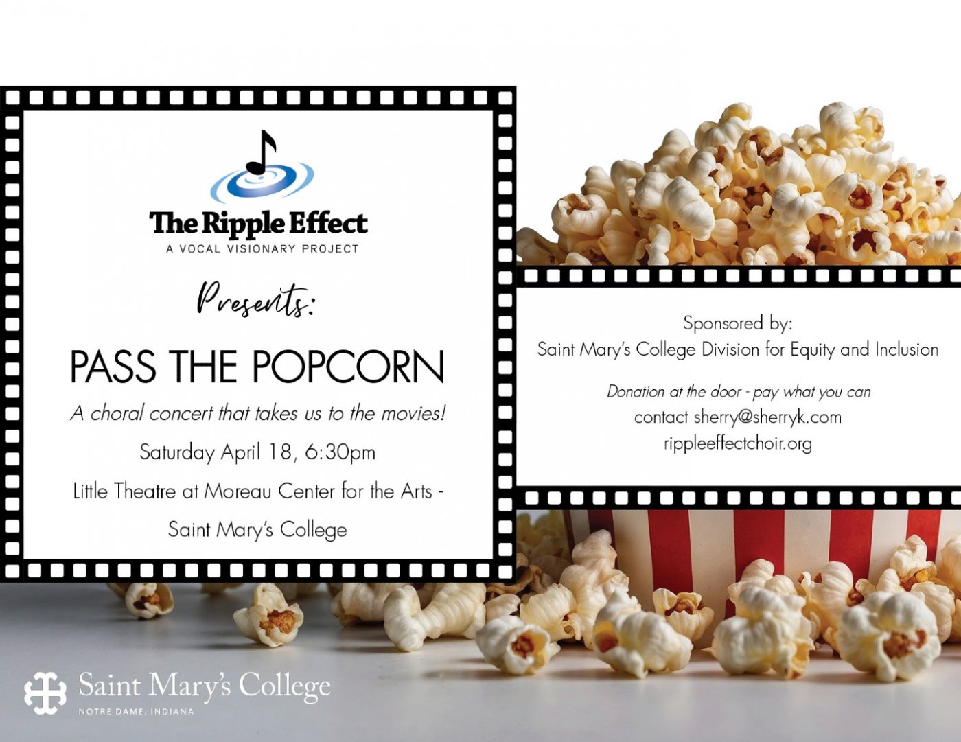 On Saturday, April 18, Sherry K’s groundbreaking group The Ripple Effect Vocal Visionary Project presents Pass the Popcorn -- a celebration of music that takes us to the movies!