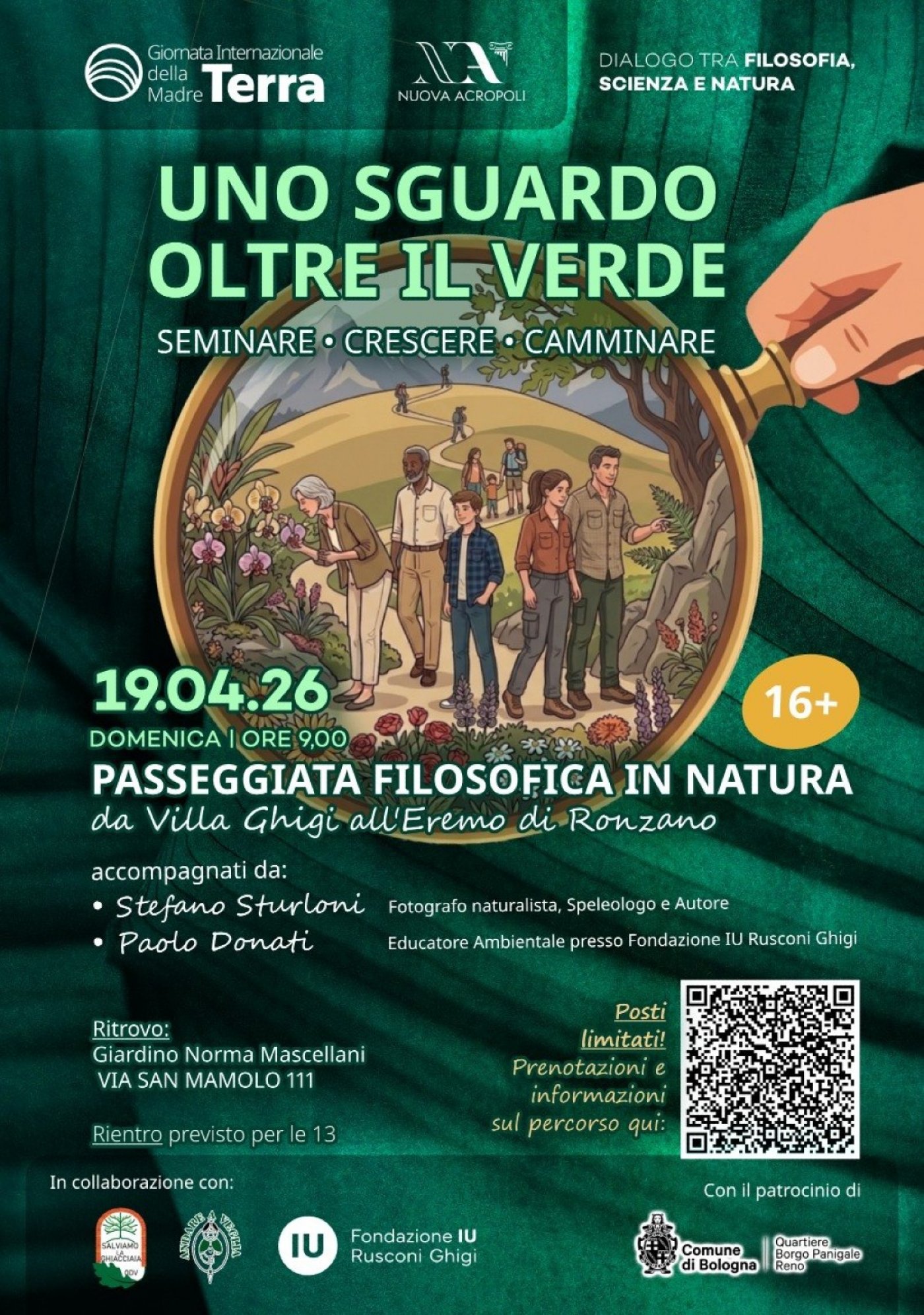 Nuova Acropoli Bologna O.d.V. invita la cittadinanza come ogni anno ad un’iniziativa per celebrare il nostro pianeta, in occasione della Giornata Mondiale della Terra indetta ogni anno dalle Nazioni Unite. Questa ricorrenza nasce con l’obiettivo di riportare l’attenzione sull’ambiente e sulla sua salvaguardia e cade ogni anno un mese e un giorno dopo l'equinozio di primavera: per il 2026, il 22 aprile.