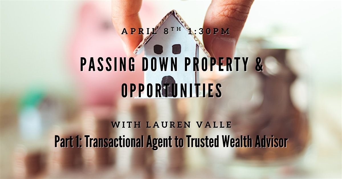 Elevate your role in real estate beyond transactions in Passing Down Property & Opportunities - Part 1: Transactional Agent to Trusted Wealth Advisor with Lauren Valle. This powerful session is designed to help you shift your mindset and approach from simply closing deals to becoming a long-term advisor your clients trust for building and preserving wealth.