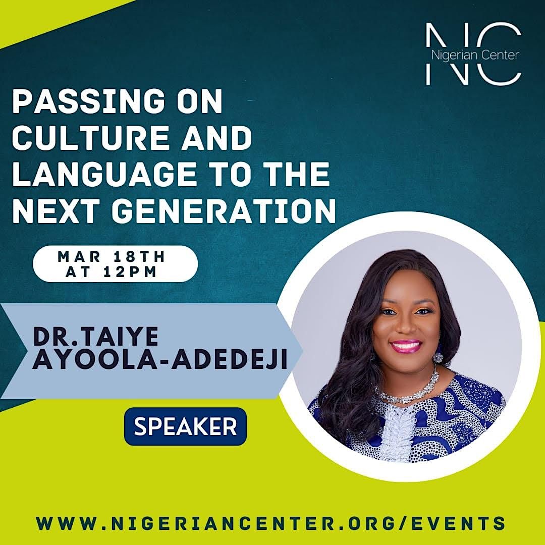 The richness of African cultural practices using the culture of the Yoruba people as an exampleBenefits of retaining indigenous African cultural values in the Western societyConsequences of the collective African diaspora not actively engaging the next generation in matters related to language, cultural heritage and identity.Helpful tips for teaching children an African language in the home, using the Yoruba language as an exampleTools and resources to learn or teach an African languageTO REGISTER CLICK HERE: https://www.nigeriancenter.org/events