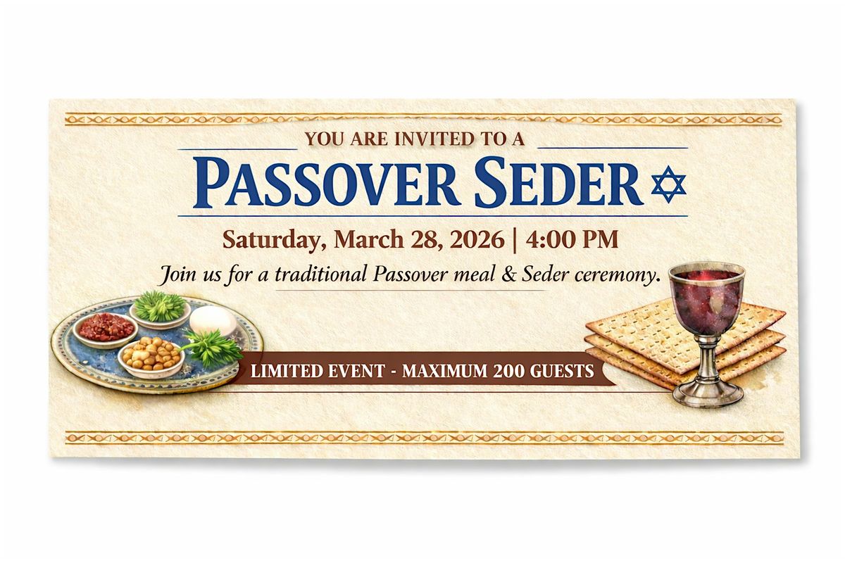 Join us for a meaningful Passover Seder on Saturday, March 28, 2026 at 4:00 PM. During this special evening, we will share in a traditional Seder meal and walk through the rich symbolism of Passover and its biblical significance.