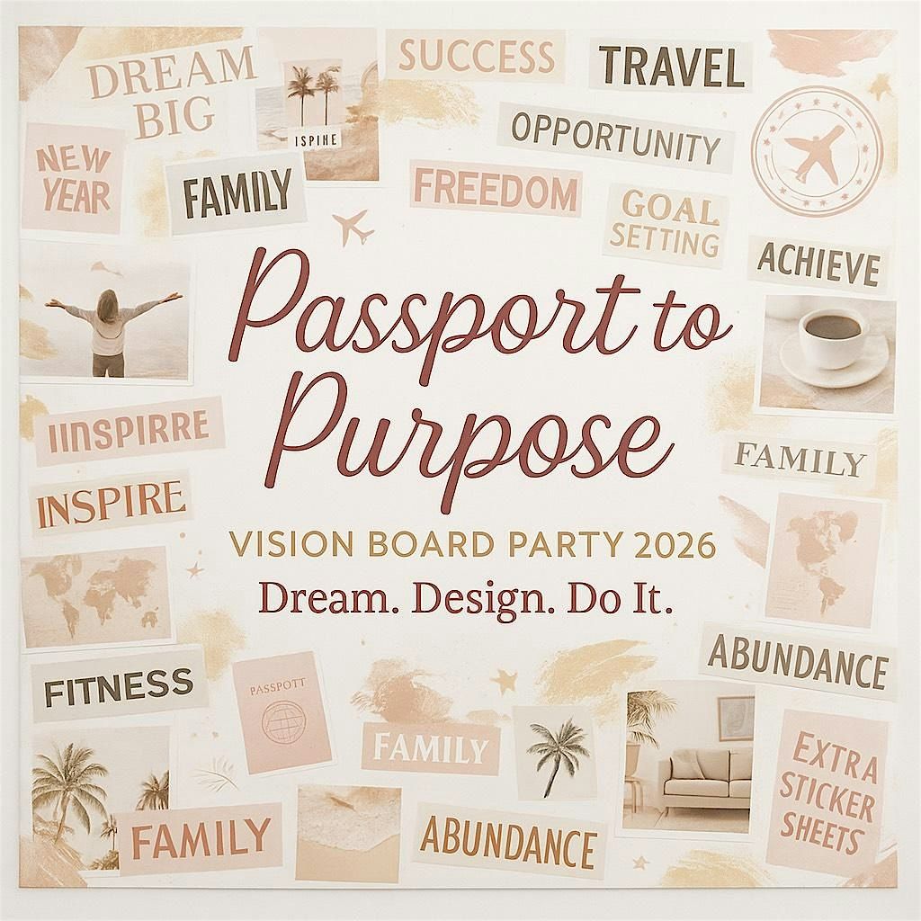 Join us for Passport to Purpose: Vision Board Party 2026, a transformational experience designed to help you dream boldly, design intentionally, and take inspired action toward the life you desire.