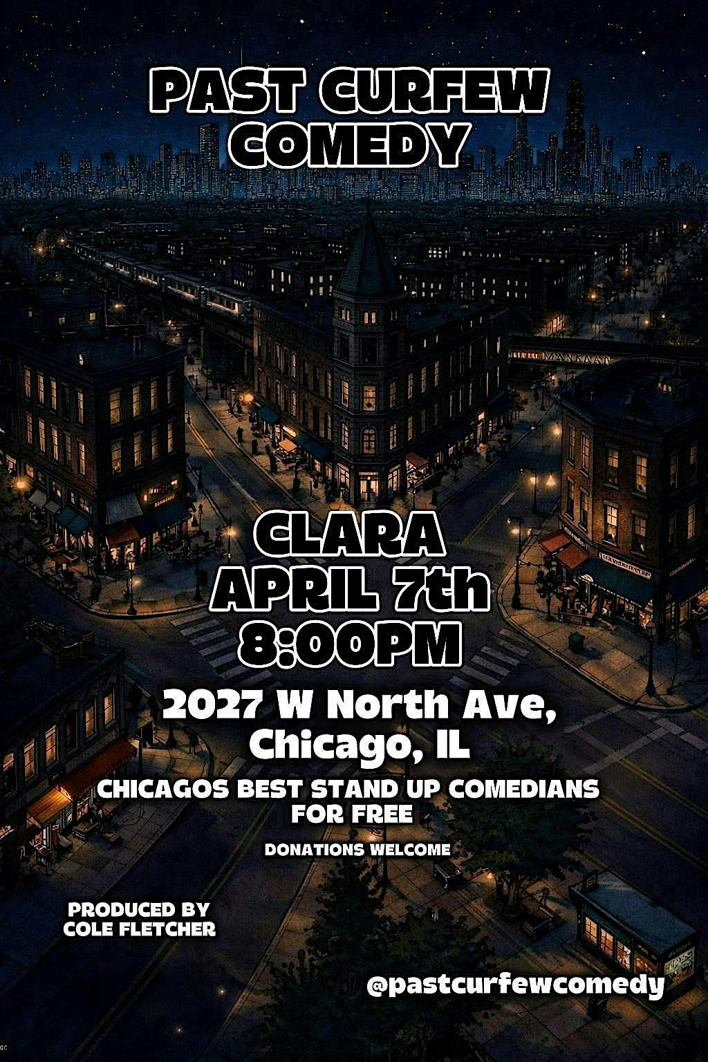 Past Curfew Comedy is a brand new standup comedy showcase located in Wicker Park at Clara! Featuring Chicago’s BEST standup comedian and touring comedians. We’re a completely free show but donations are welcome! Hope you can come laugh with us