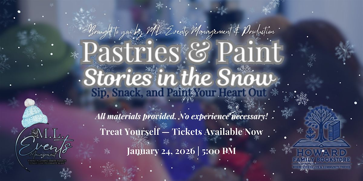 Step in from the cold and settle into a warm, story-filled evening of creativity, comfort, and connection. Pastries & Paint: Stories in the Snow invites you to slow down, sip something warm, and let your creativity unfold in an intimate winter setting surrounded by books, art, and community.