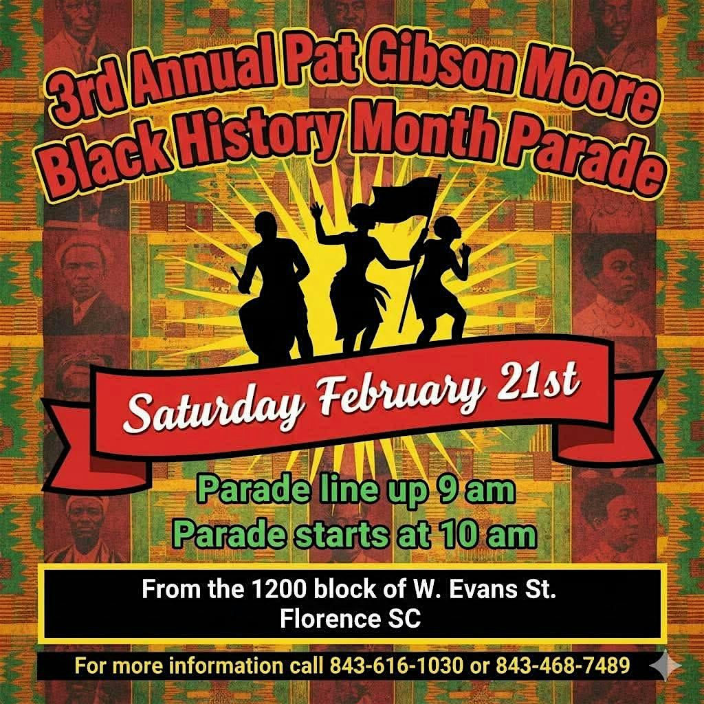 We are thrilled to announce the 3rd Annual Pat Gibson Moore Black History Month Parade! Join us as we come together to honor our history and celebrate our vibrant community. Bring the whole family out for a morning of joy, culture, and celebration.