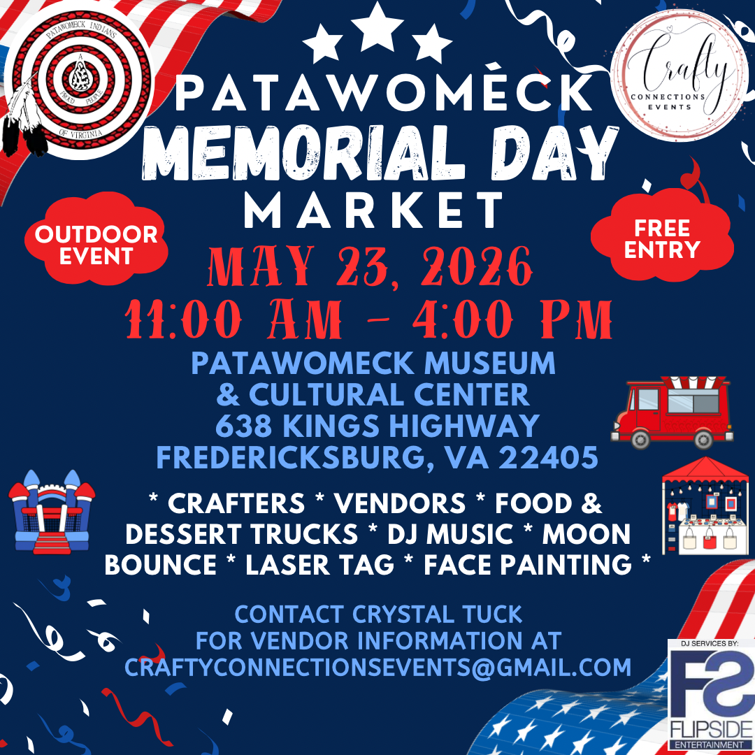 Don't miss out on this opportunity to support local artisans and connect with the cultural tapestry of the Patawomeck tribe.