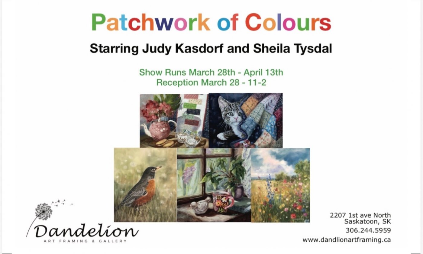Invitation is open to everyone to attend the opening reception of Patchwork of Colours starring Judy Kasdorf & Sheila Tysdal.