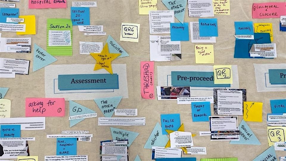 While this is an open event, we want to particulary encourage people who work in or have direct experience of the issues that are discussed on the day. While we will not be sharing individual stories in detail, quotes and experiences presented in the work may be triggering for some, especially in relation to addiction/recovery, care proceedings, family court, self-harm, abuse, and other interconnected issues.
