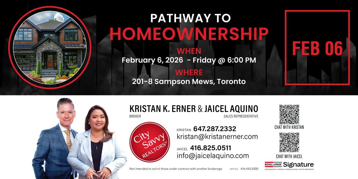 City Savvy REALTORS® presents Pathway to Homeownership, an informative, no-pressure evening designed to help you understand the buying process, today’s market, and what it really takes to move from thinking about buying… to owning.