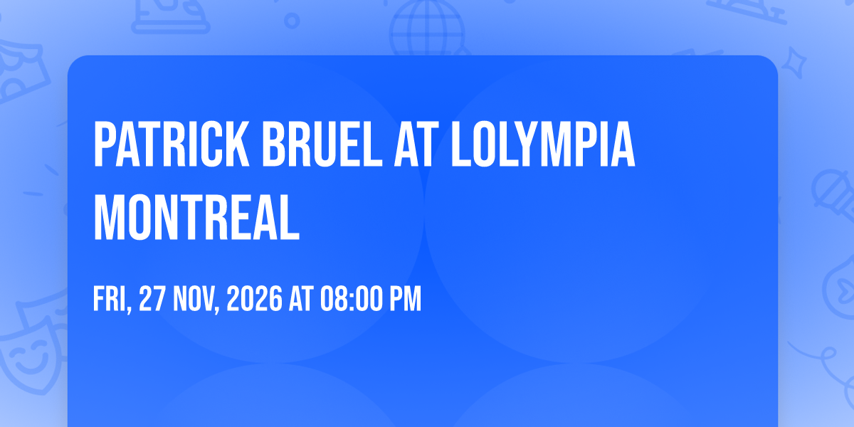 🌟 Journey into wonder at Patrick Bruel at LOlympia Montreal, where extraordinary experiences await around every corner! 🏛️ Set against the backdrop of LOlympia Montreal in dynamic Montreal, QC, this event promises to exceed all expectations. 📅 Join us on November 28th, 2026 at 08:00 PM for a celebration that combines innovation, entertainment, and community spirit in perfect harmony. ✨ There will be an atmosphere where memories are made and stories come alive, ensuring every guest experiences something truly remarkable. 🎊 This is more than just an event; it's a journey into the extraordinary!