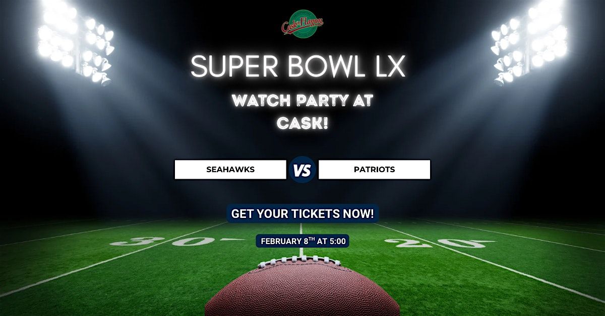 Welcome to the Super Bowl Watch Party at Cask 'N Flagon Boston! Get ready for an epic night of football, friends, and fun on February 8, 2026 at 5:00 PM (Eastern Time). Join us to cheer on your favorite team, enjoy delicious food and drinks, and soak up the exciting game day atmosphere. Don't miss out on the action - mark your calendars and come celebrate with us!