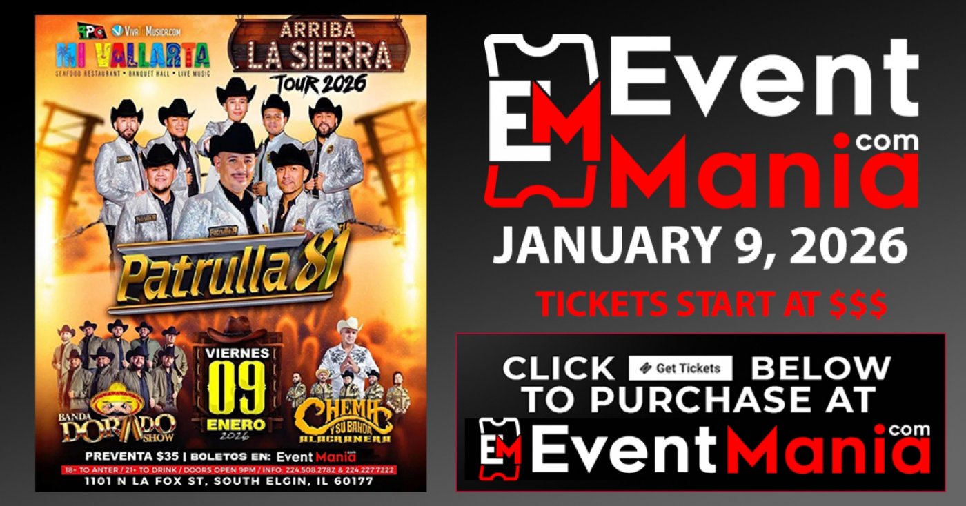 Compra tus boletos aqui: https://eventmania.com/events/patrulla-81-y-mas-south-elgin-il-2026-01-09/gWNe/seat