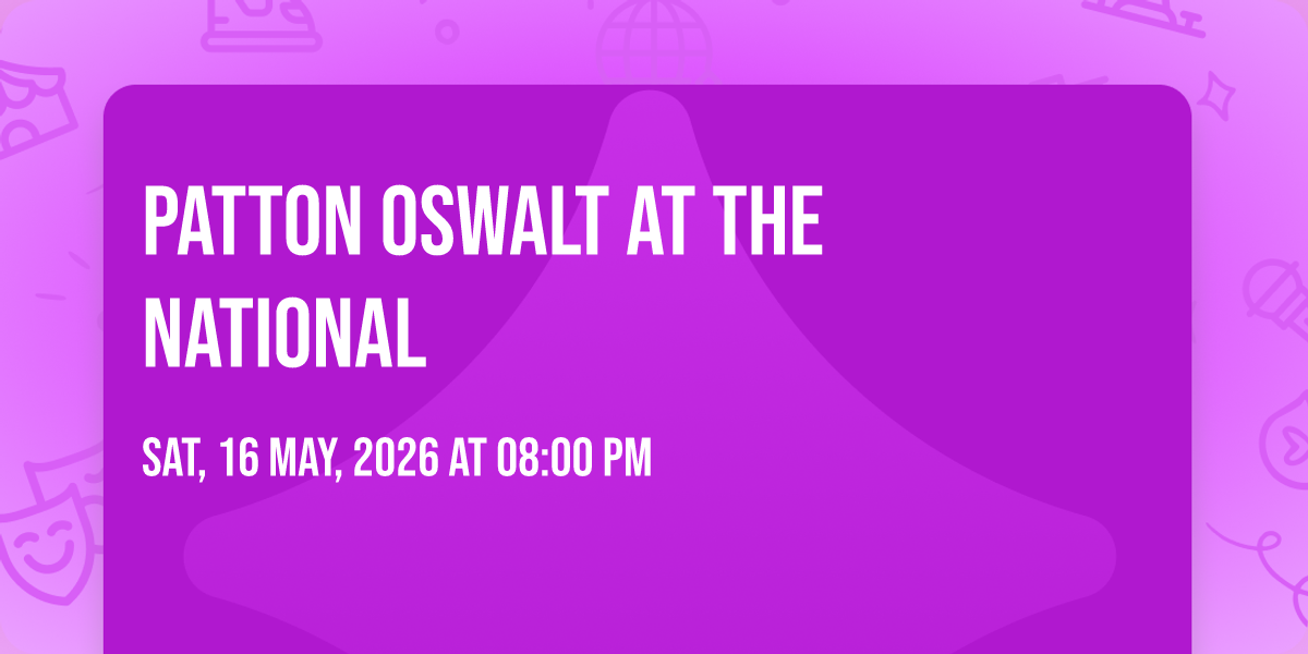 🎉 Prepare to be amazed at Patton Oswalt at The National, the most anticipated gathering of the season! 🌟 Set against the stunning backdrop of The National in vibrant Richmond, VA, this event promises to redefine your expectations. 📅 Mark your calendars for May 16th, 2026 at 08:00 PM and get ready to immerse yourself in an atmosphere of wonder and excitement. ✨ From the moment you arrive, you'll be transported into a world where memories are made and stories come alive. They have crafted an experience that perfectly harmonizes entertainment, innovation, and community spirit. 🌈 Join us as we create moments that will be discussed for years!