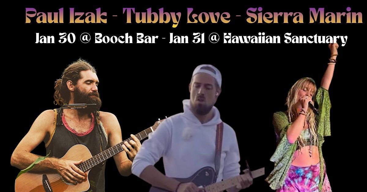 Join us LIVE In The Booch Bar Rainbow Room with the incredible Paul Izak, Tubby Love, and Sierra Marin hitting the stage. This is an in person event you don't want to miss – vibes, great tunes, and an unforgettable atmosphere all in one spot!