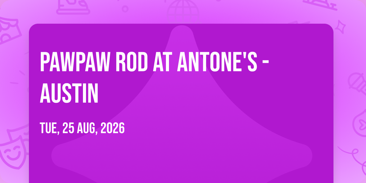 ✨ Embark on an extraordinary journey at PawPaw Rod at Antone's - Austin, where every moment promises to be unforgettable! 🌟 Imagine of transforming Antone's - Austin in the heart of Austin, TX into a realm of endless possibilities. 📅 Join us on August 25th, 2026 at 08:00 PM for an experience that will challenge your imagination and exceed your expectations. 🎯 This carefully curated event combines the finest elements of entertainment, innovation, and community spirit. Whether you're an adventure seeker, culture enthusiast, or someone looking for unique experiences, this event offers something special for everyone. 🎊 Don't miss this chance to be part of something extraordinary!