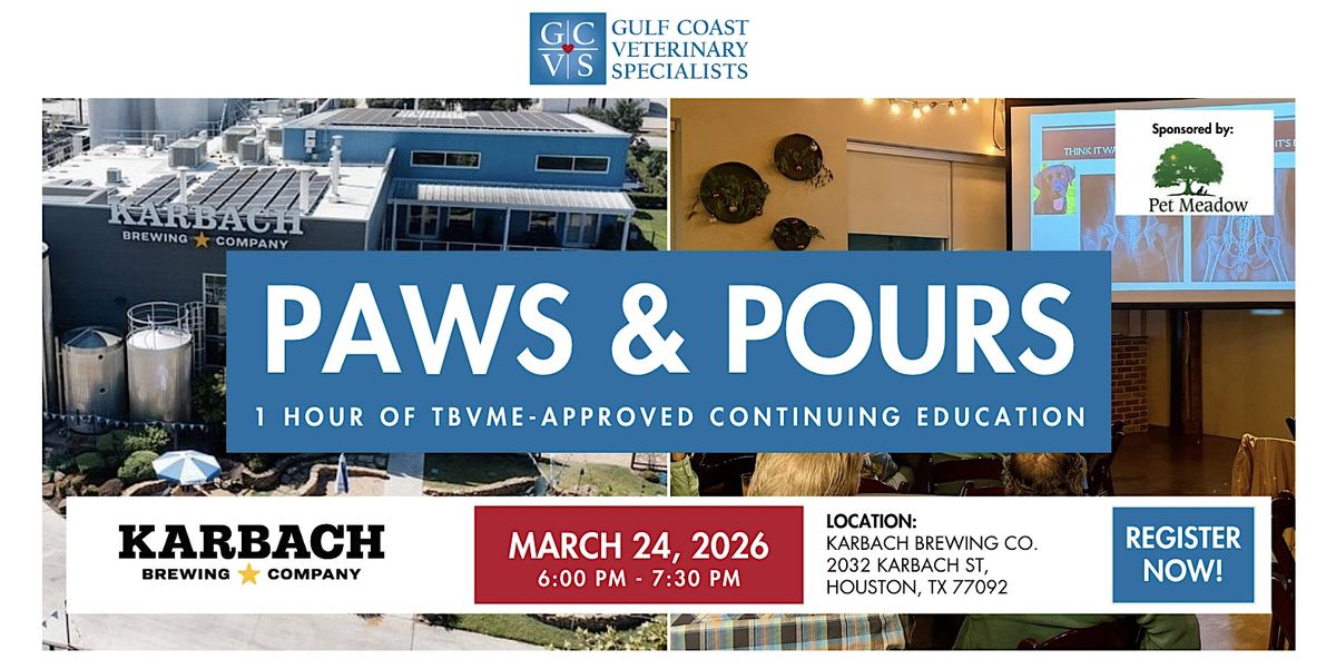 Gulf Coast Veterinary Specialists invites you to join us at Karbach Brewing Co. for an evening of education, networking, and great food, featuring an engaging clinical topic presented by Dr. Li, one of GCVS' board-certified specialists.