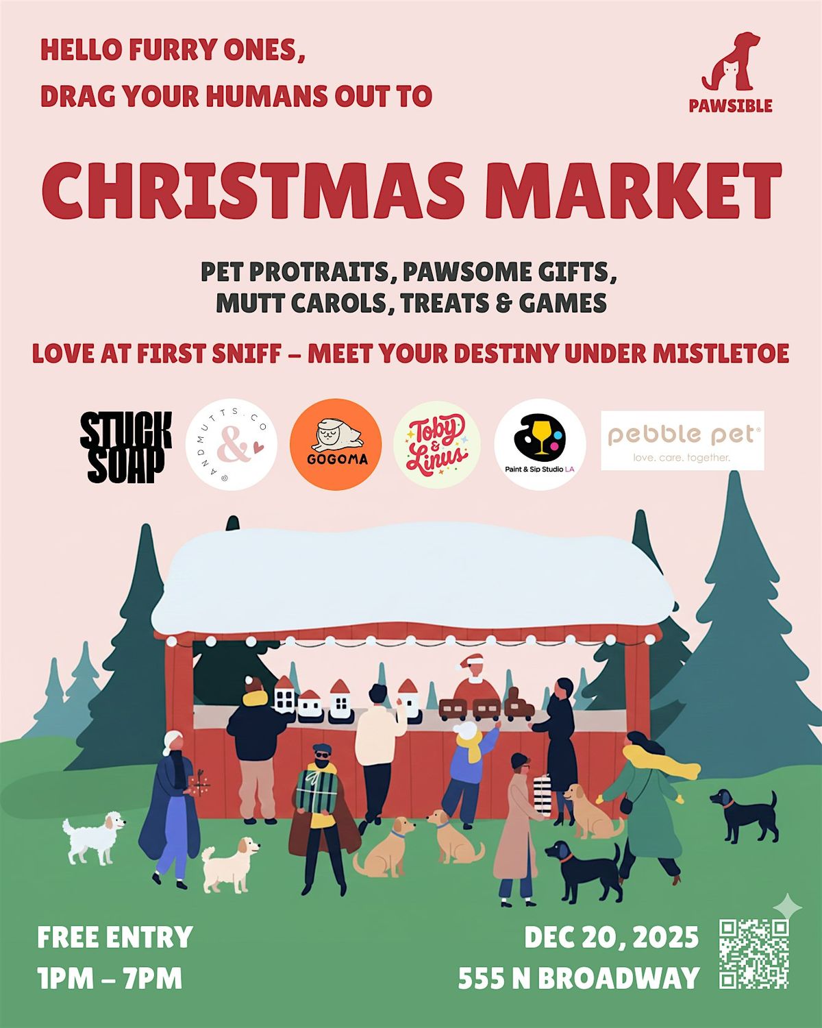 Join us for Pawsible’s Christmas Market and Grand Opening on December 14. We’re turning our DTLA space into a cozy indoor holiday market with local vendors, festive treats, and a warm spot for cat and dog lovers to hang out and enjoy the season.