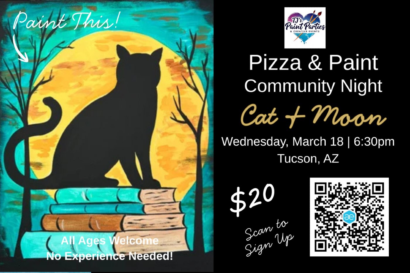 Join us for a warm, welcoming Community Pizza & Paint Party led by TJ’s Paint Parties, with a pay-what-you-can option offered through its community initiative, Soulshine Creative Collective.