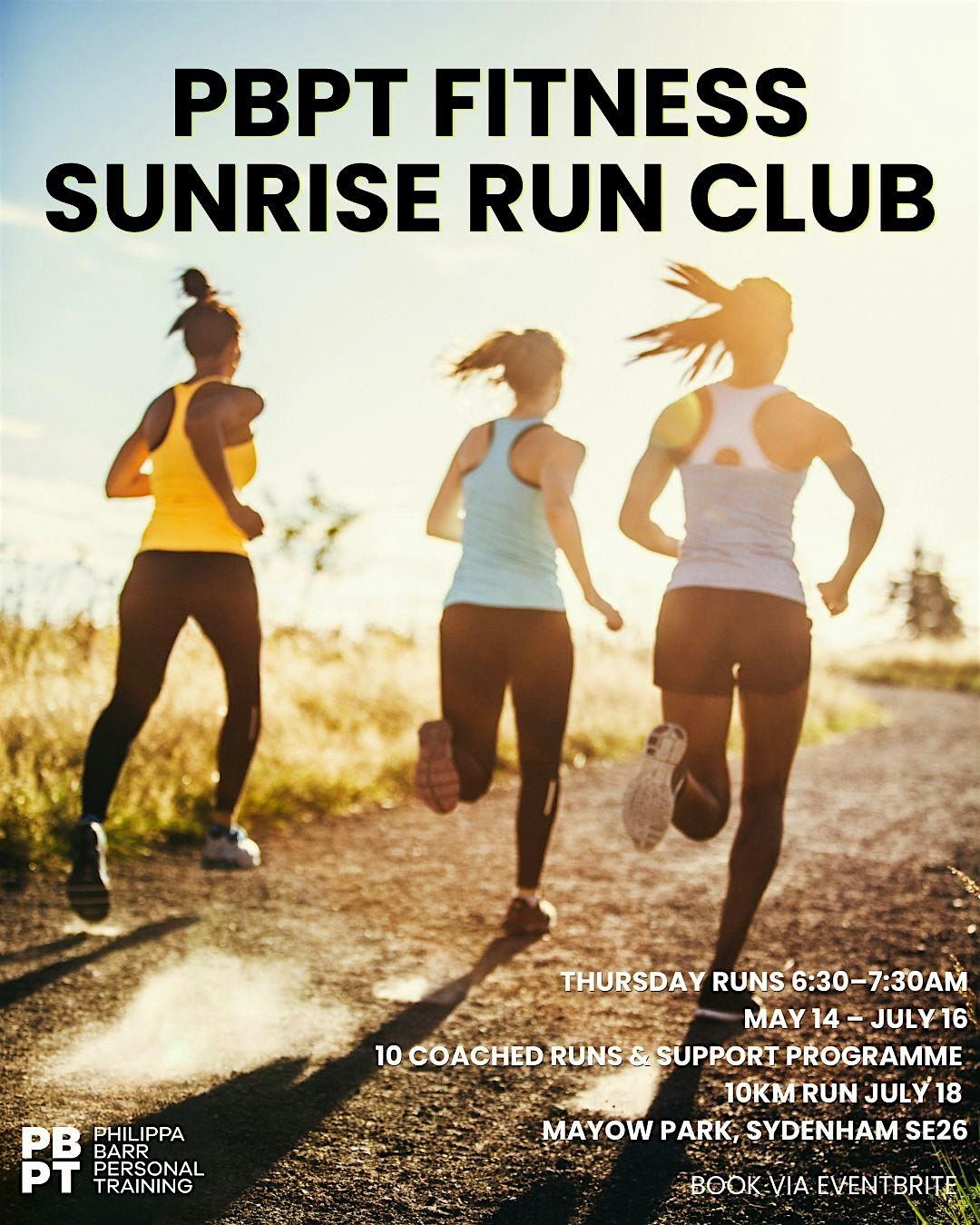 PBPT Sunrise Run Club is a 10-week structured programme for women, designed to help you build consistency, strength, and confidence in your running, all leading towards a supported 10km run on July 18th.