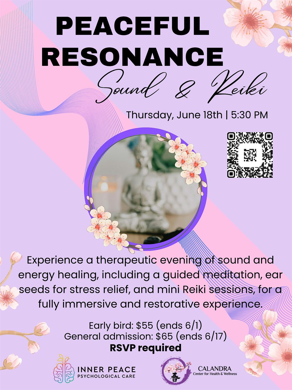 Step into a serene space and experience Peaceful Resonance, an evening designed to soothe your mind, body, and spirit. In this 60 minute session, you’ll be guided through a series of restorative practices that help release stress, restore balance, and invite inner calm: