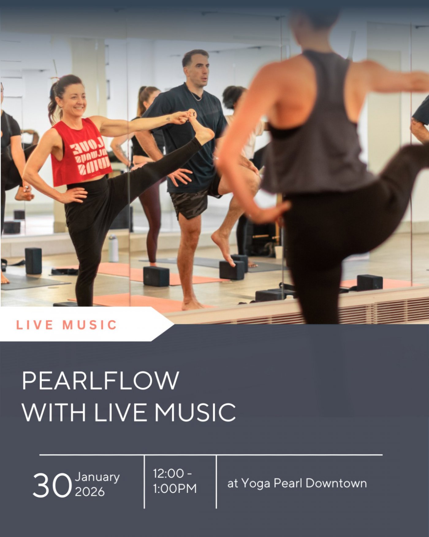 This class is accompanied by live music played by a local musician. The flow is led by a Yoga Pearl instructor.