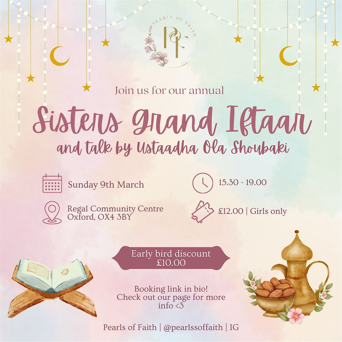 🌸Pearls of Faith cordially invites you to the annual sisters Grand Iftaar!🌸