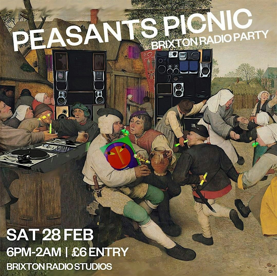 Peasants clutching glowsticks and house records? Bassbins and freaky dancing? Free pizza?! Yes friends! The Peasants' Picnic returns to Brixton Radio for the first of our 2026 parties! Come join us for a boogie💃🏾 Reggae and pizza followed by proper house and techno 👌