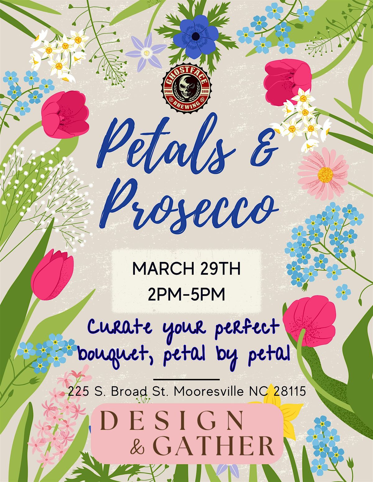 Grab your girls, pop the prosecco and let's play with flowers! Petals & Prosecco is a hands-on flower bar experience where you sip, design and laugh while creating your own beautiful arrangement to take home. The perfect girls afternoon-pretty, playful and full of bubbly moments!