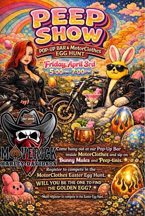 Join us for PEEP SHOW, a one-of-a-kind Easter event inside the MotorClothes department at Maverick Harley-Davidson.