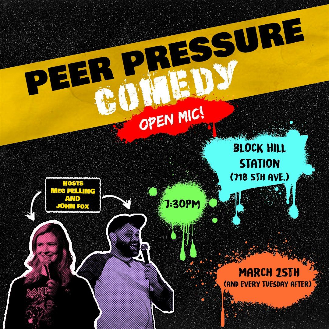 Every Tuesday night, Peer Pressure Comedy takes over everyone's favorite dive bar, Block Hill Station, for an evening of laughs and groans.