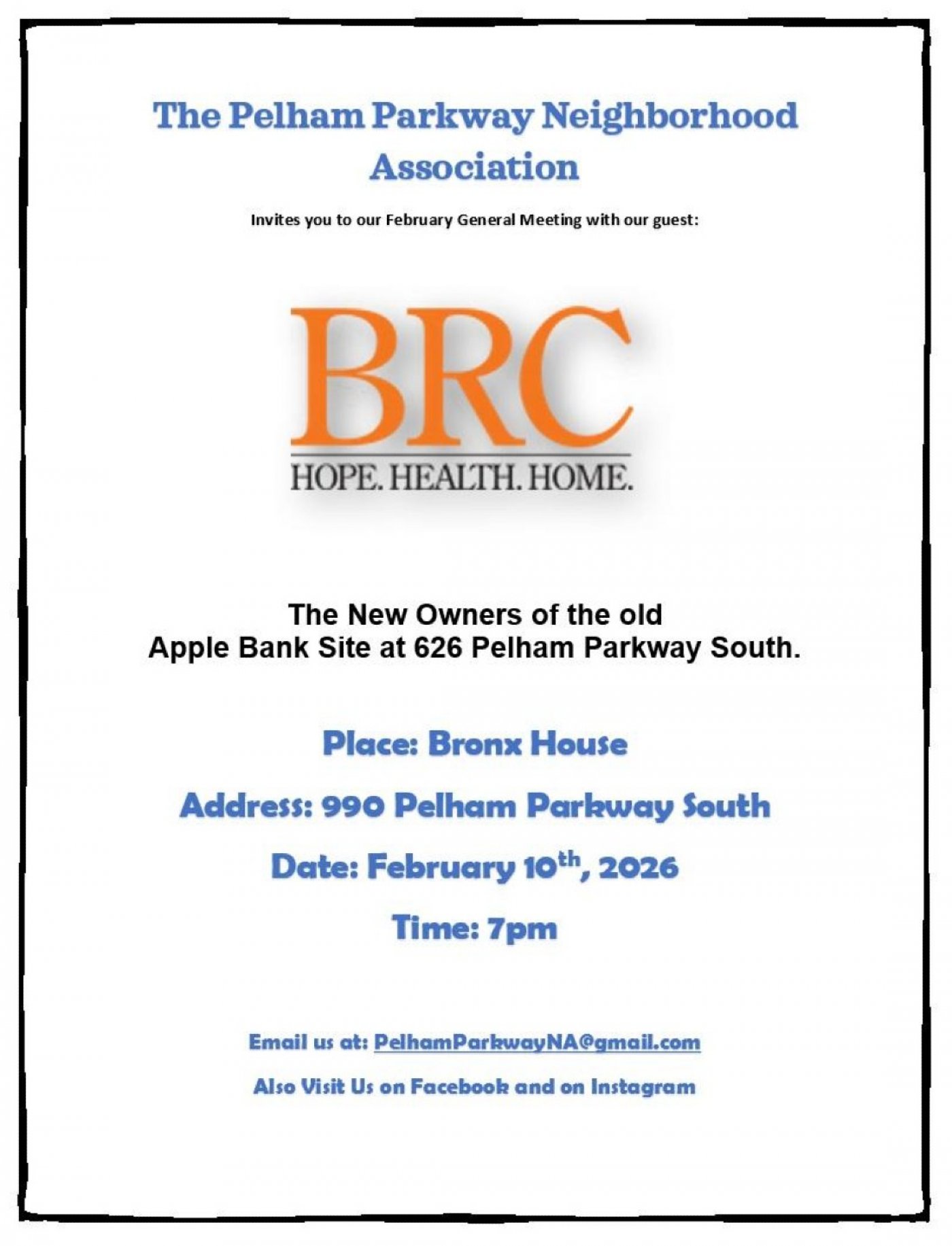 The Community meeting will be held at Bronx House,990 Pelham Parkway South Bx NY 10461.We start at 7 pm sharp.!!
