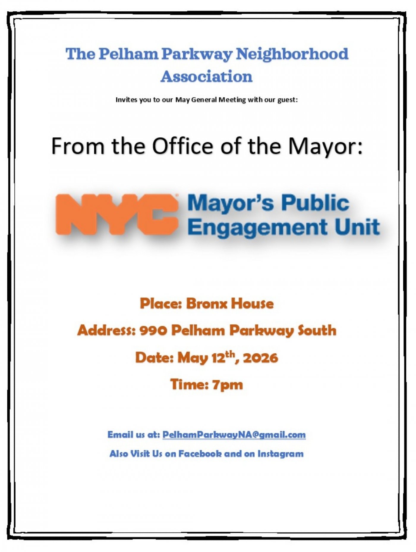 The Tuesday May 12 PPNA General meeting will have have special guest speakers from The Mayors Office: