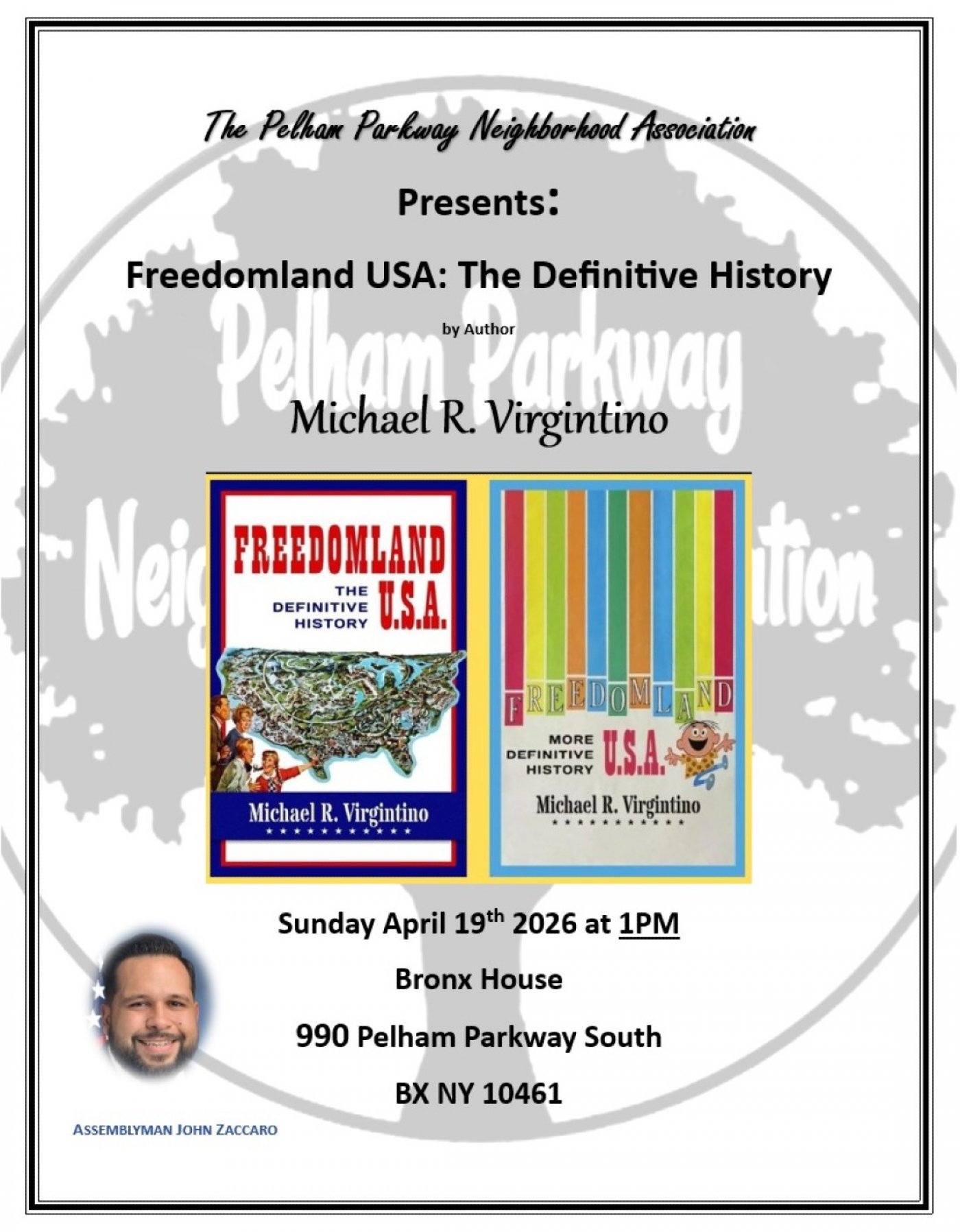 On SUNDAY April 19th The Pelham Parkway Neighborhood Association will be hosting a lecture by noted author Mike Virgintino,who wrote multipe books all about Freedomland which was where Co-op City once was before Co-op City. Its a facinating and educational lecture.Join us for this trip down memory lane and learn all the unknown secrets about Freedomland!