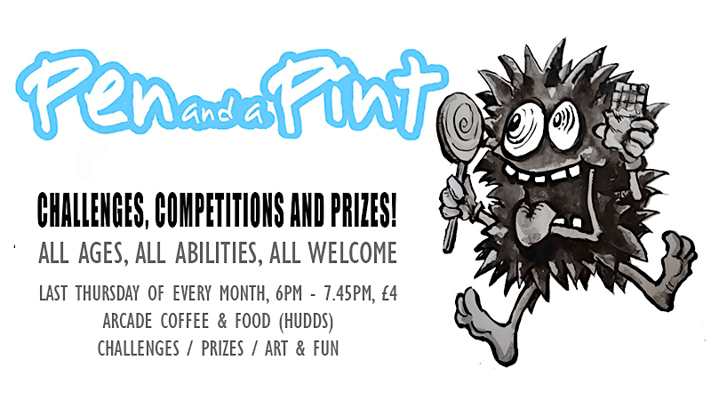 The event takes place on the last Thursday of every month (6.00-7.45pm) in the relaxed atmosphere of Arcade Coffee and Food (Byram Arcade, Huddersfield). These themed drawing events are designed to let you flex your artistic muscle and doodle alongside like-minded types. During the evening, pick up tips from our resident artist, share your own tricks and take place in communal art projects. There are also a few sketching games to enter during the evening. Friendly and relaxed, this is a chance to leave the house, enjoy a drink, share a joke and doodle at your own pace.