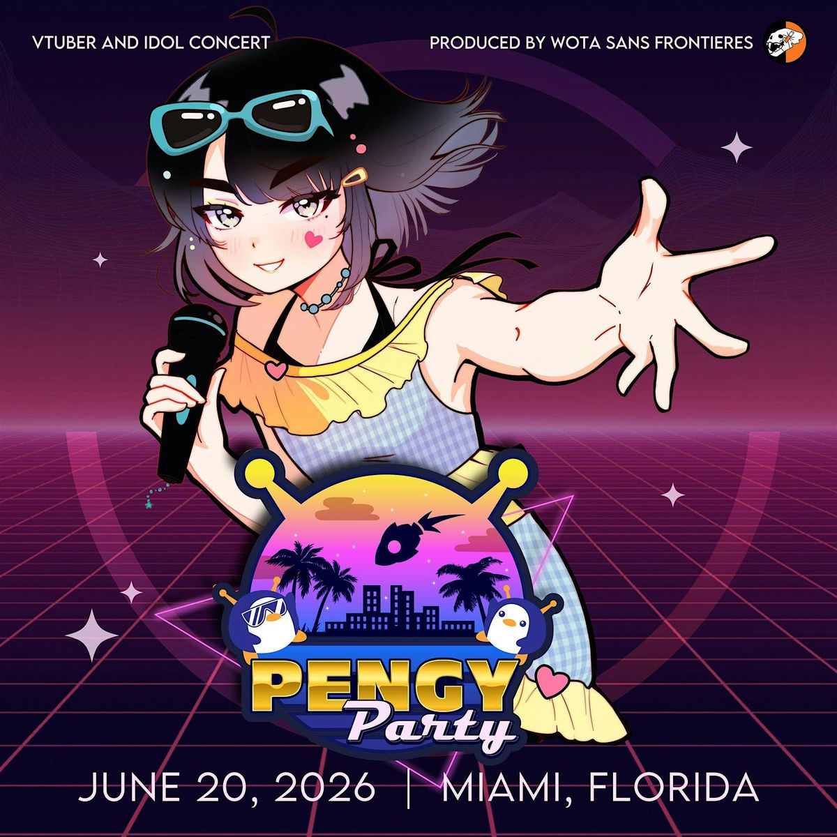 Wota Sans Frontieres presents Pengy Party, a celebration of all things Pengy! Join us in Miami and catch a vibe as we hang out with Pengy, her friends and her favorite performers — both on the virtual stage and the physical one! Enjoy three hours of VTubers, kaigai idols, anisong, and more.