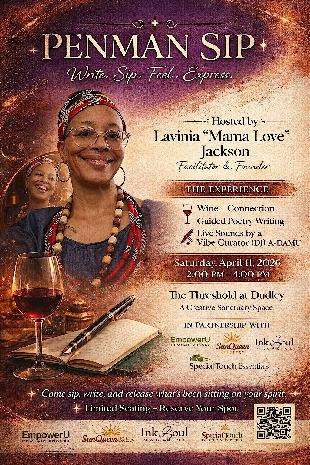 PenmanSip is an interactive workshop, lead by Mama Love, where people and poetry come together. Participants receive a workbook, a magazine, a protein shake, and walk away with, at least, one poem.