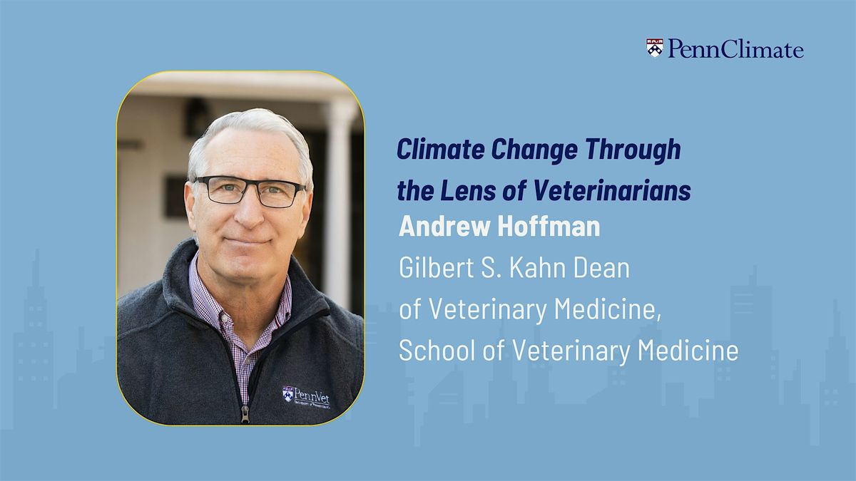 Penn Climate welcomes Andrew Hoffman, Gilbert S. Kahn Dean of Veterinary Medicine at Penn Vet, for a seminar titled "Climate Change Through the Lens of Veterinarians."