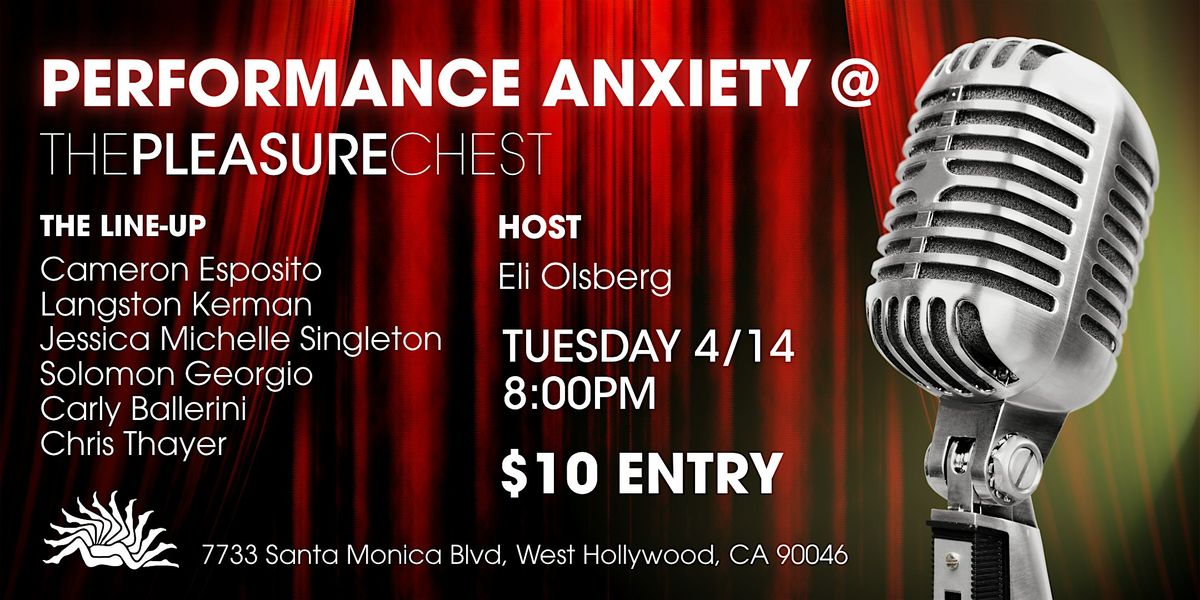 Get your laughs and lube in the same place! Join us for Performance Anxiety, a comedy night hosted by For ten bucks, you can enjoy free beer, 15% off your purchases and live performances by some of the best comics working today.