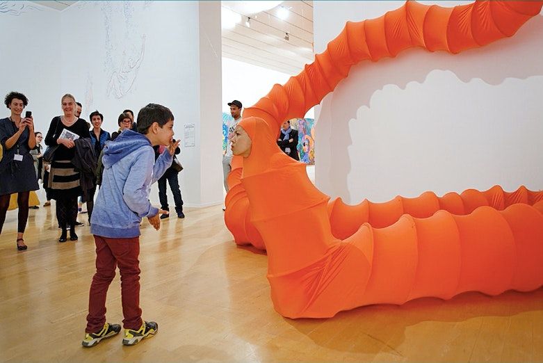 The Buddhist Bug project is an internationally acclaimed interdisciplinary series combining live performance, installation, photography and video art by Anida Yoeu Ali, whose body of work explores issues of displacement and belonging. The Buddhist Bug reflects the artist’s autobiographical exploration of hybrid identities and her own spiritual turmoil between Islam and Buddhism. The live performance occurs in conjunction with the exhibition, And I Must Scream, and viewers are encouraged to actively interact and engage with the Bug at their own comfort level.