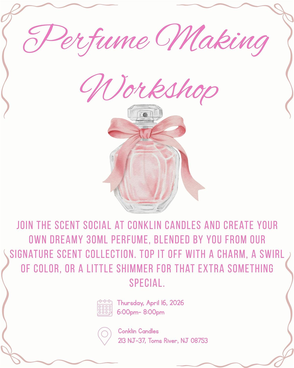 Join us for a hands-on perfume making experience with The Scent Social at Conklin Candles ✨