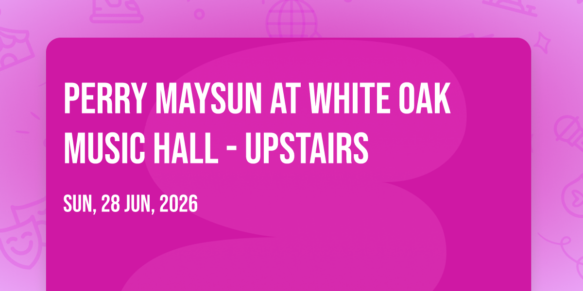π Be part of history at Perry Maysun at White Oak Music Hall - Upstairs, an extraordinary gathering that will captivate your imagination! ποΈ The prestigious White Oak Music Hall - Upstairs in Houston, TX sets the stage for an unforgettable experience on June 28th, 2026 at 07:00 PM. β¨ They are bringing together the finest elements of entertainment and innovation to create moments that will take your breath away. From the moment you arrive, you'll be immersed in an atmosphere of wonder and excitement. π― This carefully planned event ensures every guest experiences something truly special. π Early booking is recommended for this must-attend event of the season!