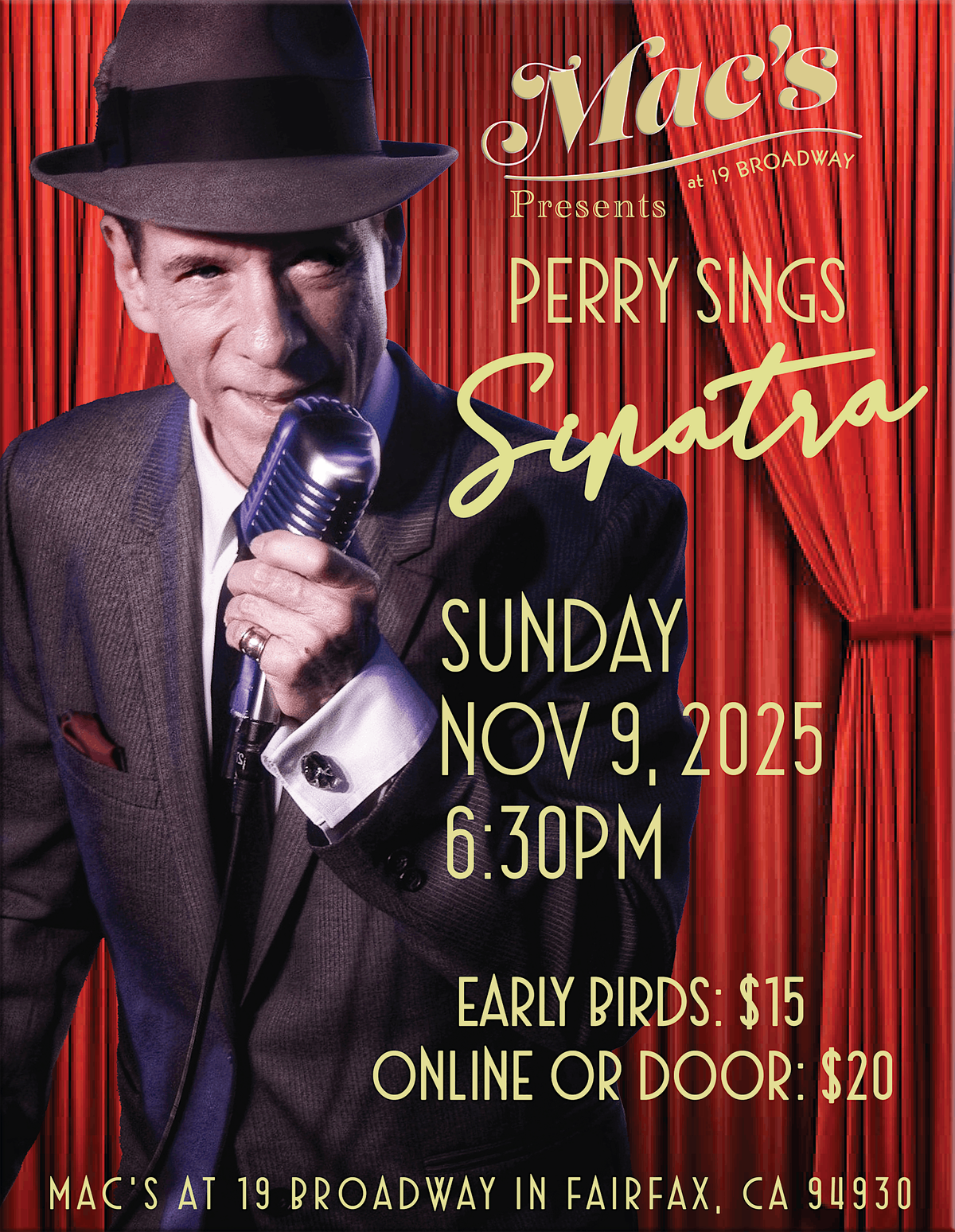 Step back in time for an unforgettable evening of timeless classics as Perry Sings Sinatra returns to Mac’s in Fairfax on Sunday, November 9th at 6:30 PM.