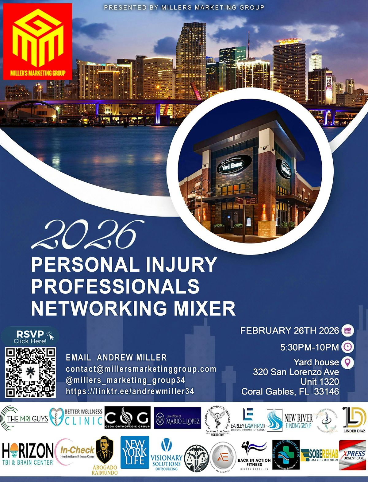 Welcome to the Personal Injury Professionals Networking Mixer! Join us at Yard House on February 26, 2026 at 6:00 PM for an evening of networking and collaboration. This event is a great opportunity to connect with fellow professionals in the personal injury field, share insights, and build valuable relationships. Don't miss out on this chance to expand your network and enhance your career. We look forward to seeing you there! (Eastern Time)