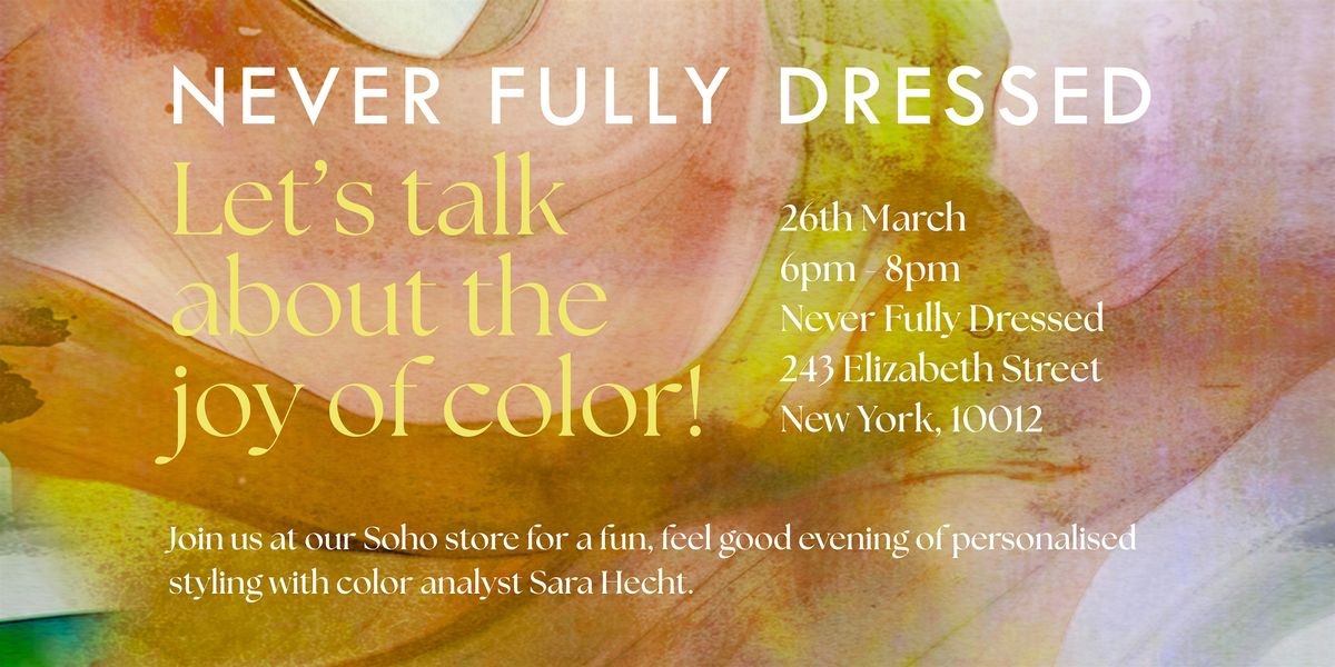 Join us at our Soho store for a fun, feel-good evening of personalised styling with color analyst Sara Hecht. We know how much color can boost your mood, change your day & make others smile around you, come find what makes you glow ✨